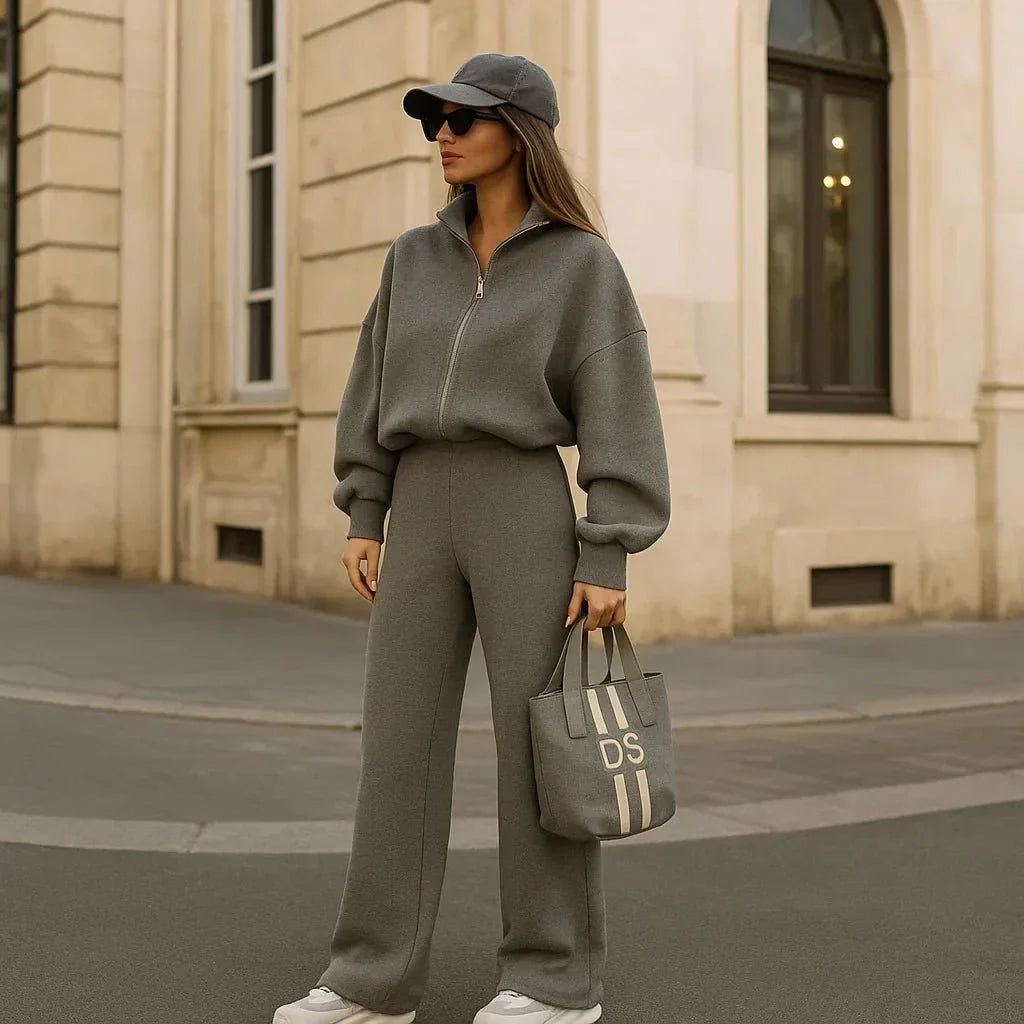 Dieses Ensemble wurde für Tage entworfen, an denen Komfort auf Eleganz trifft, und strahlt eine natürliche Ruhe aus. Seine lockere, leichte Silhouette begleitet die Bewegungen fließend, wie eine Verlängerung des Körpers. Ideal für helle Vormittage oder gemütliche Nachmittage, bietet es ein Gleichgewicht zwischen leger und raffiniert.