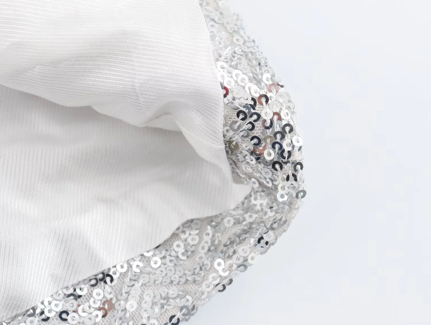 Der Blazer hat eine klare Struktur und vermittelt von Anfang an Präsenz. Die mit Pailletten besetzte Oberfläche reflektiert ständig das Licht und erzeugt einen gleichmäßigen Effekt, der bei jeder Drehung sichtbar wird. Der gerade Schnitt unterstützt die Silhouette, ohne aufzutragen, und lässt sich leicht in Outfits integrieren, bei denen ein Kontrastpunkt gesucht wird. Die Öffnung an der Vorderseite lässt Ihnen die Freiheit zu entscheiden, wie Sie es tragen möchten: offen oder eng am Körper anliegend.