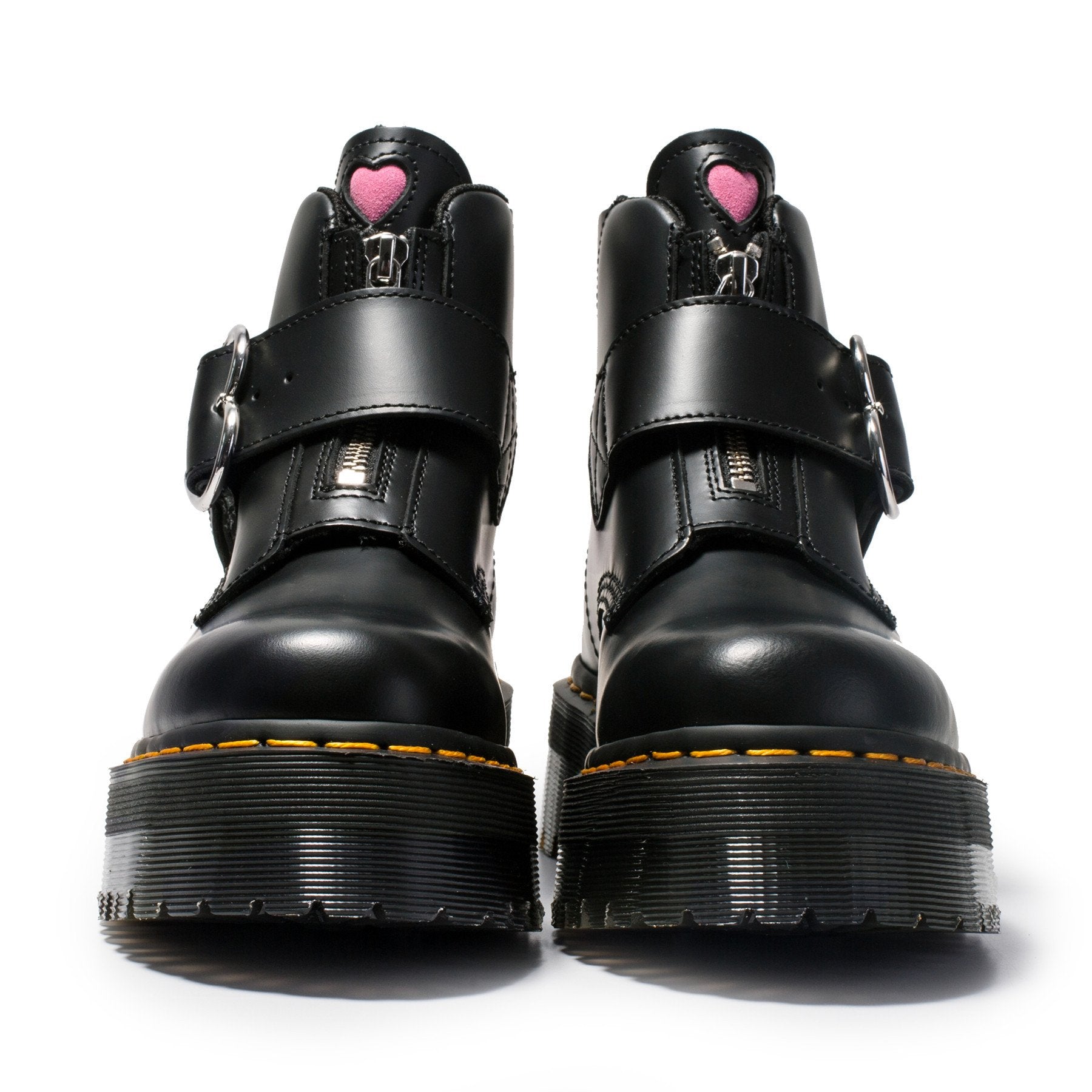 Diese Plateau-Stiefelette zeichnet sich durch eine feste Knöchel-Silhouette mit funktionellem Seitenverschluss aus. Die hochgezogene Sohle bietet stabilen Halt und die geschlossene Konstruktion schützt den Fuß beim täglichen Tragen, während eine definierte Linie und strukturelle Kontrolle erhalten bleiben.
