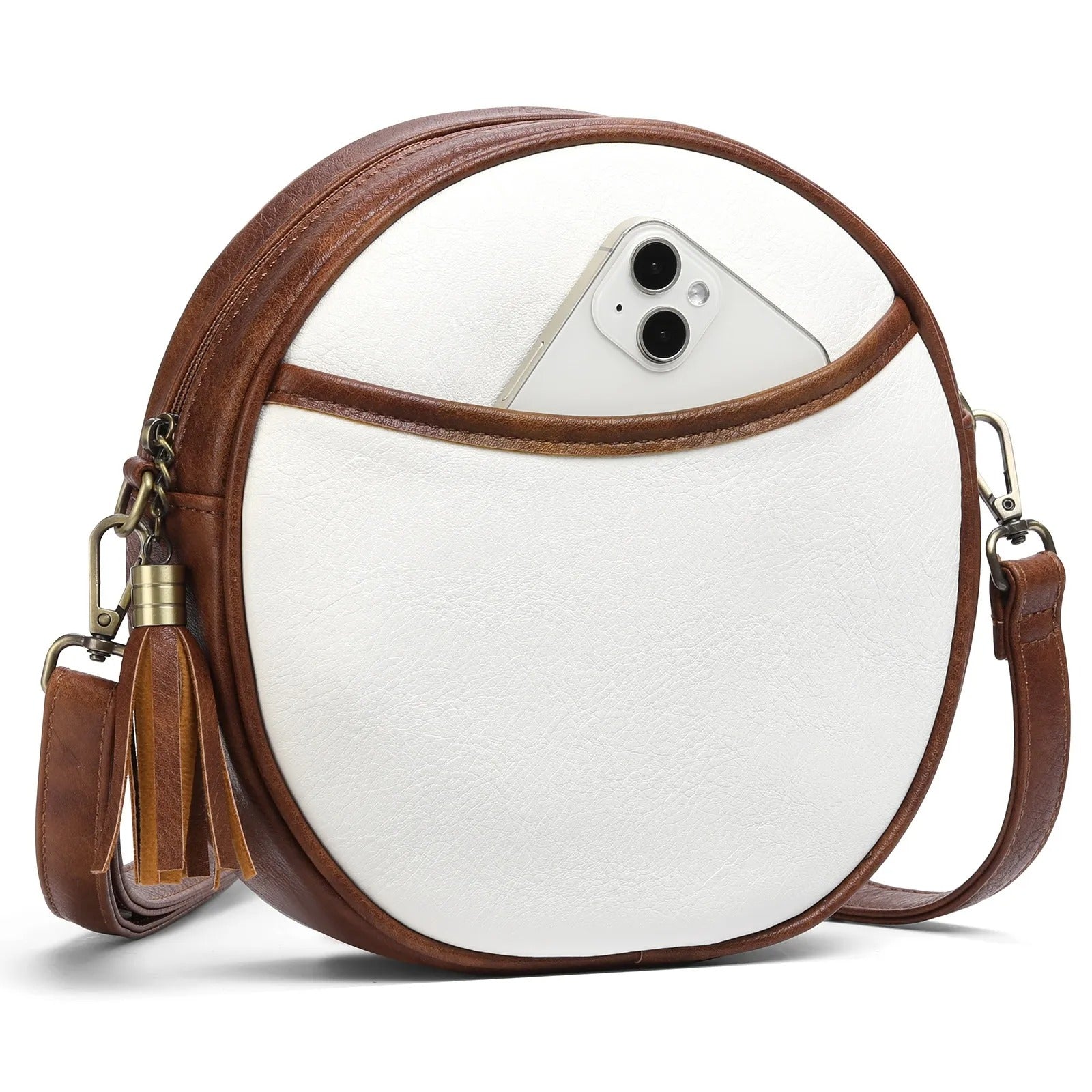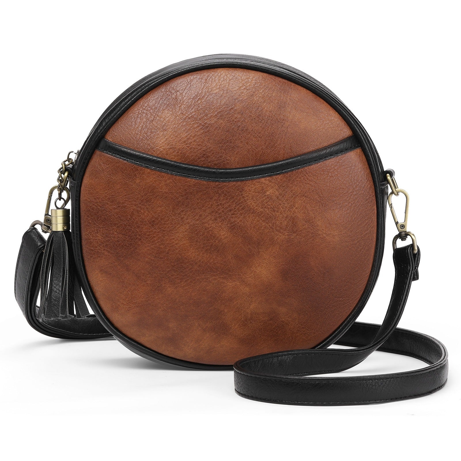 Umhängetasche für Damen mit rundem Design in Vintage-Lederoptik - Noelia
