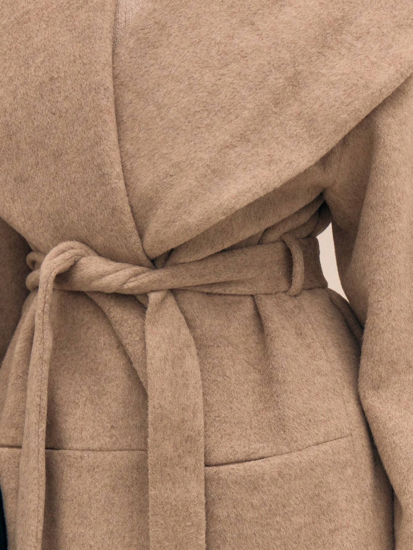 Eleganter mittellanger Mantel mit Gürtel und breitem Kragen - Liz