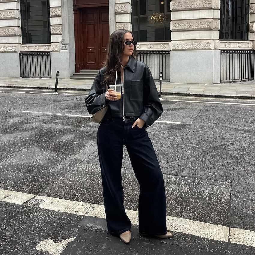 Diese Bikerjacke definiert den Streetstyle mit einem kurzen Schnitt und minimalistischen Details neu. Ihr mattes Finish verleiht ihr ein modernes, vielseitiges Aussehen, ideal für lässige bis hin zu Smart-Casual-Looks.