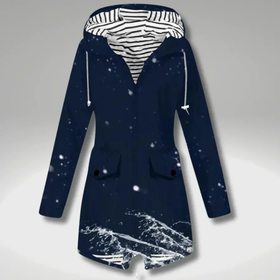 Dieser wasserdichte Mantel kombiniert modernen Stil mit absoluter Praktikabilität. Sein leichtes, funktionales Design macht ihn zu einem Must-have für regnerische oder windige Tage, während er gleichzeitig elegant und vielseitig aussieht.