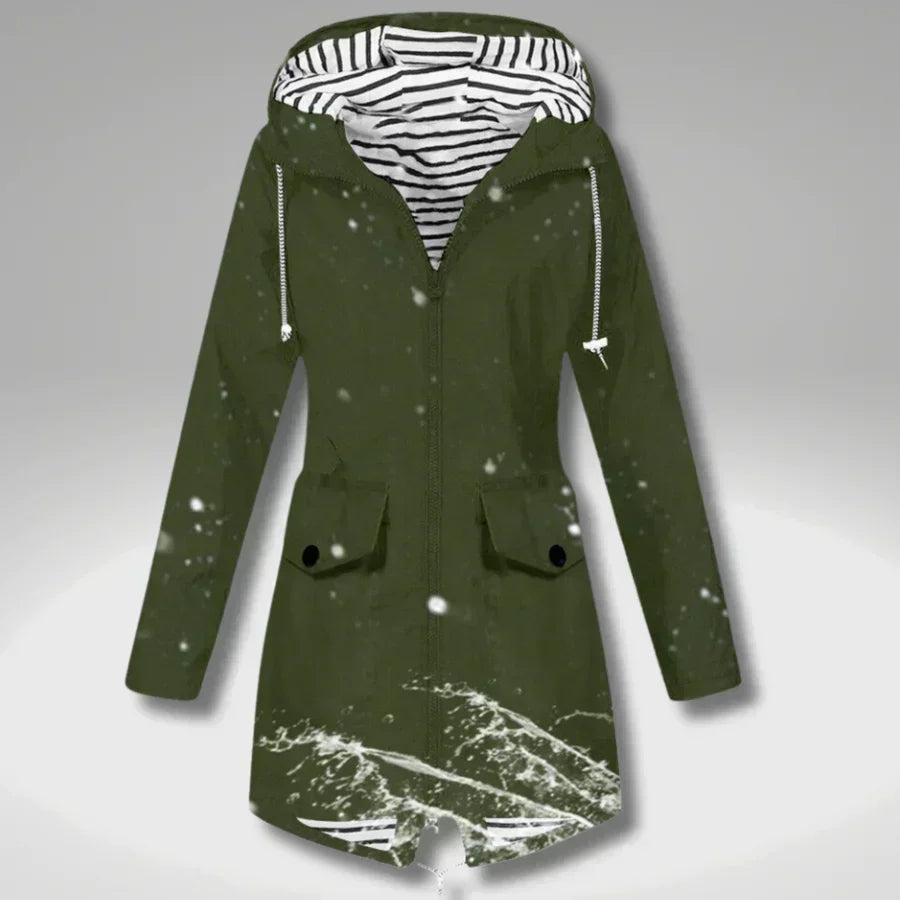 Leichter, wasserdichter Damenmantel mit verstellbarer Kapuze - Jade