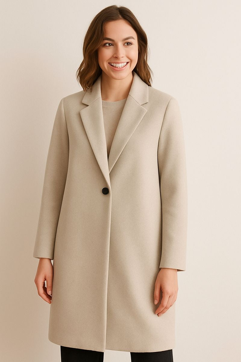 Minimalistischer langer Damenmantel mit klassischem Revers - Tessa