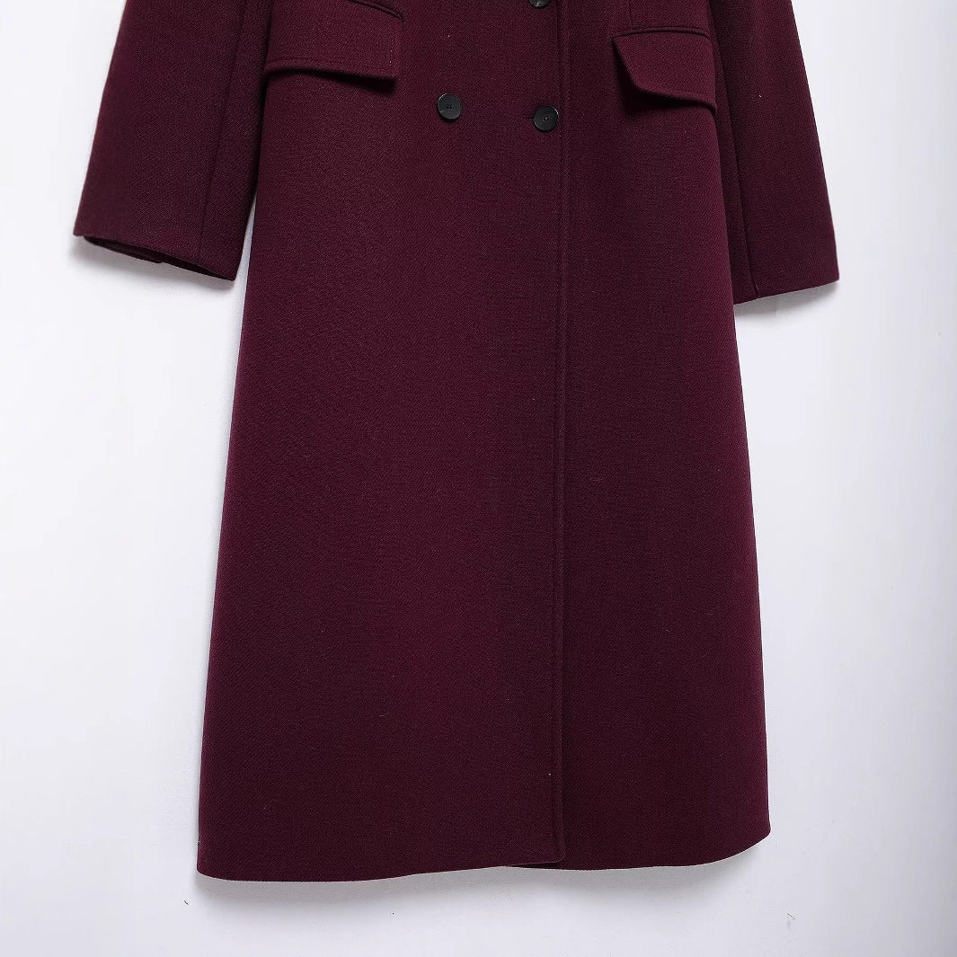 Ein Kleidungsstück, das Ruhe und Präsenz ausstrahlt. Seine langgestreckte Form und die präzisen Linien erinnern an die ruhige Eleganz, die an kalten Tagen aufkommt, wenn das Wetter dazu einlädt, sich langsam zu bewegen. Der tiefe Farbton verleiht ihm Charakter, ohne dass es überflüssig wäre.