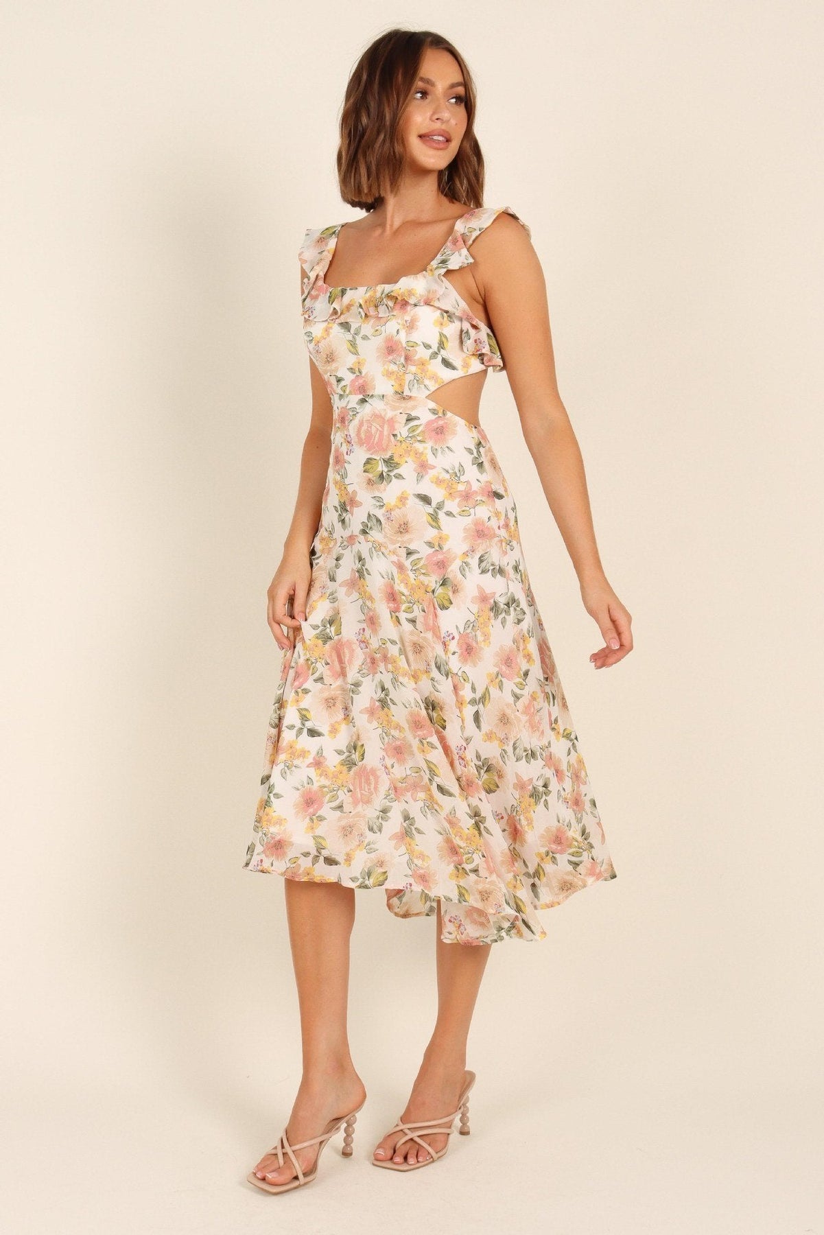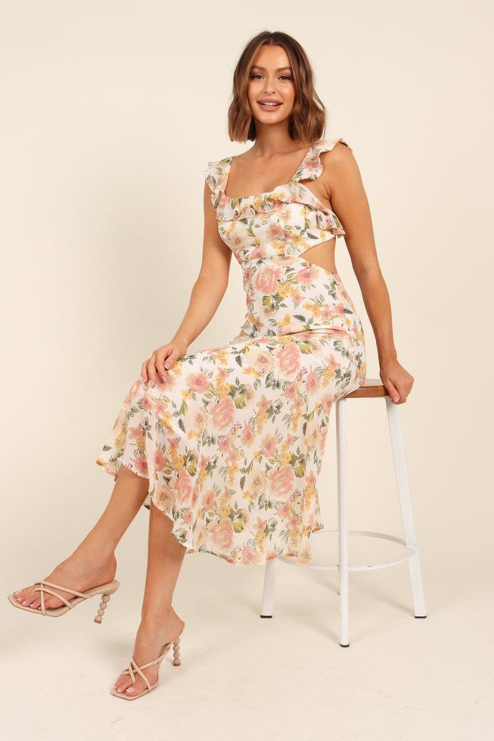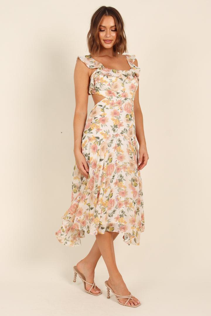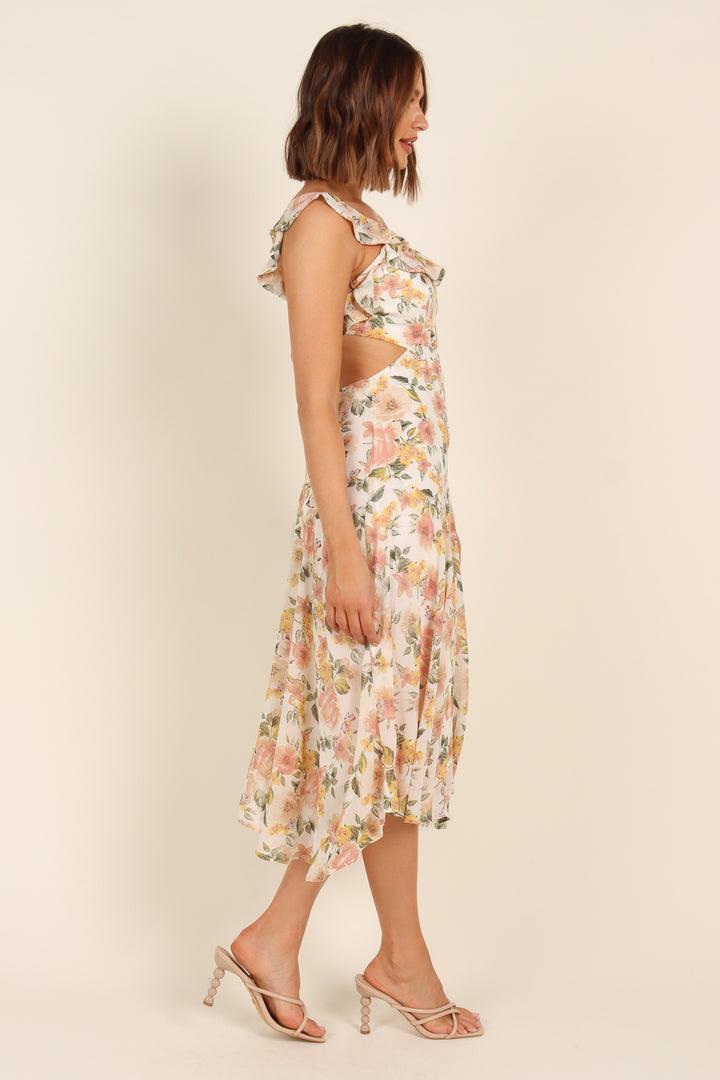 Emery - Ausgestelltes Midikleid mit geknoteten Rüschen