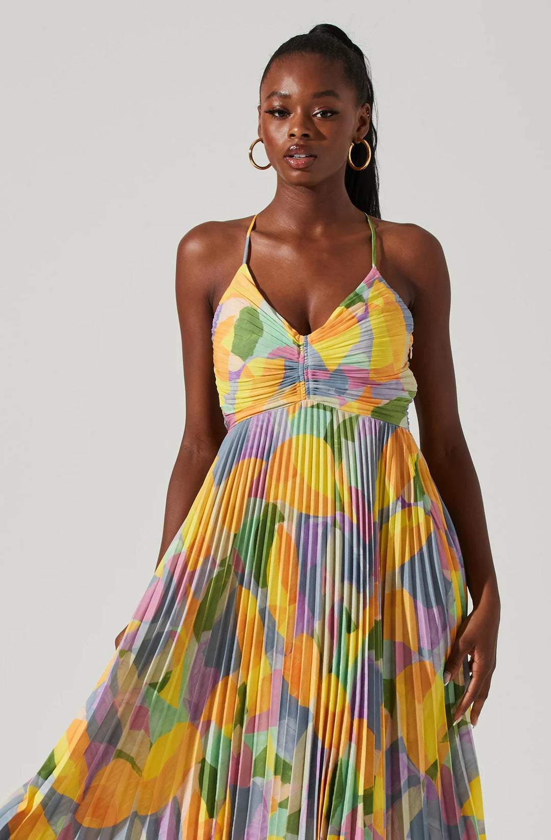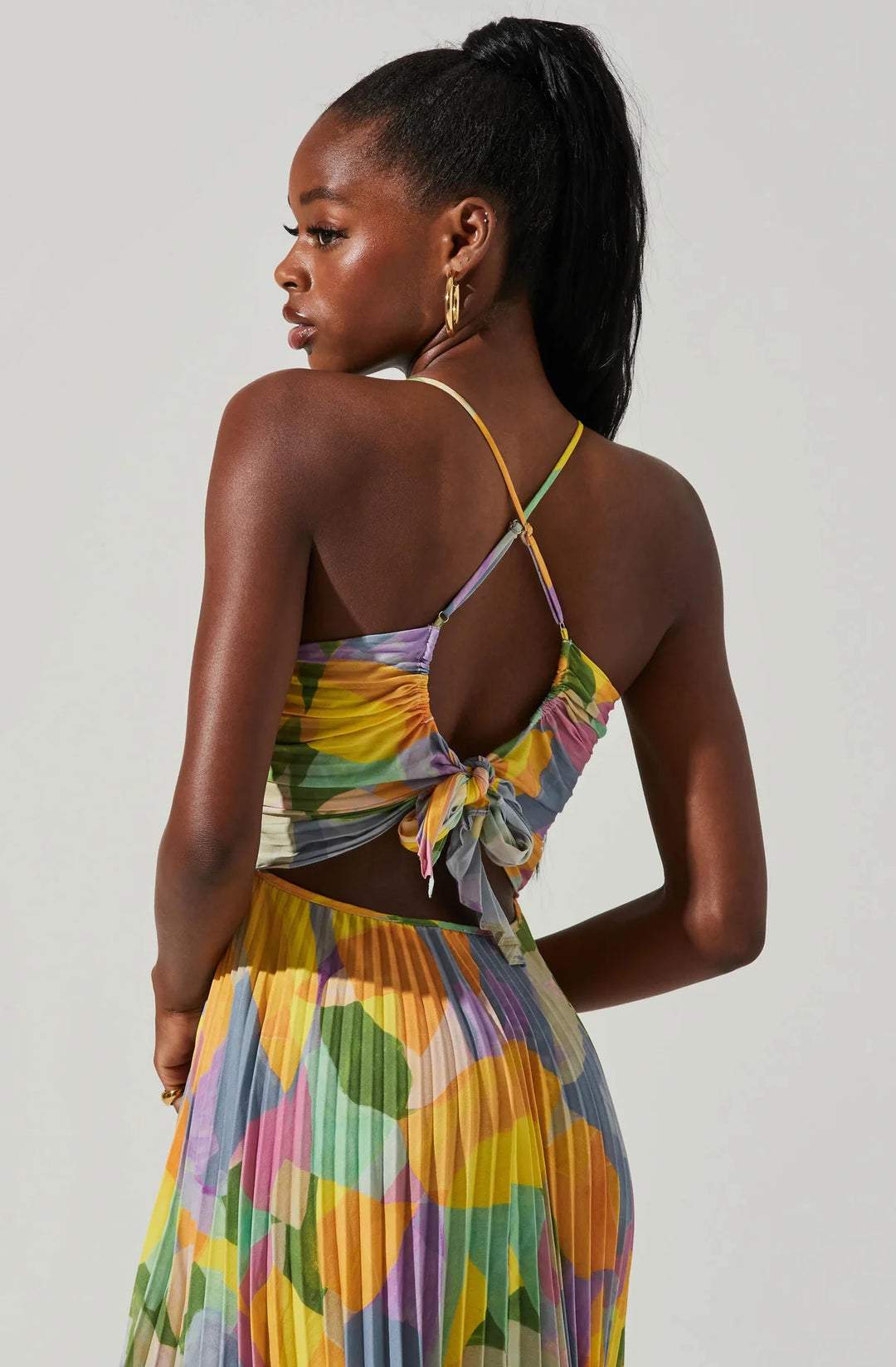 Fabienne - bedrucktes Plissee-Midikleid mit Knoten