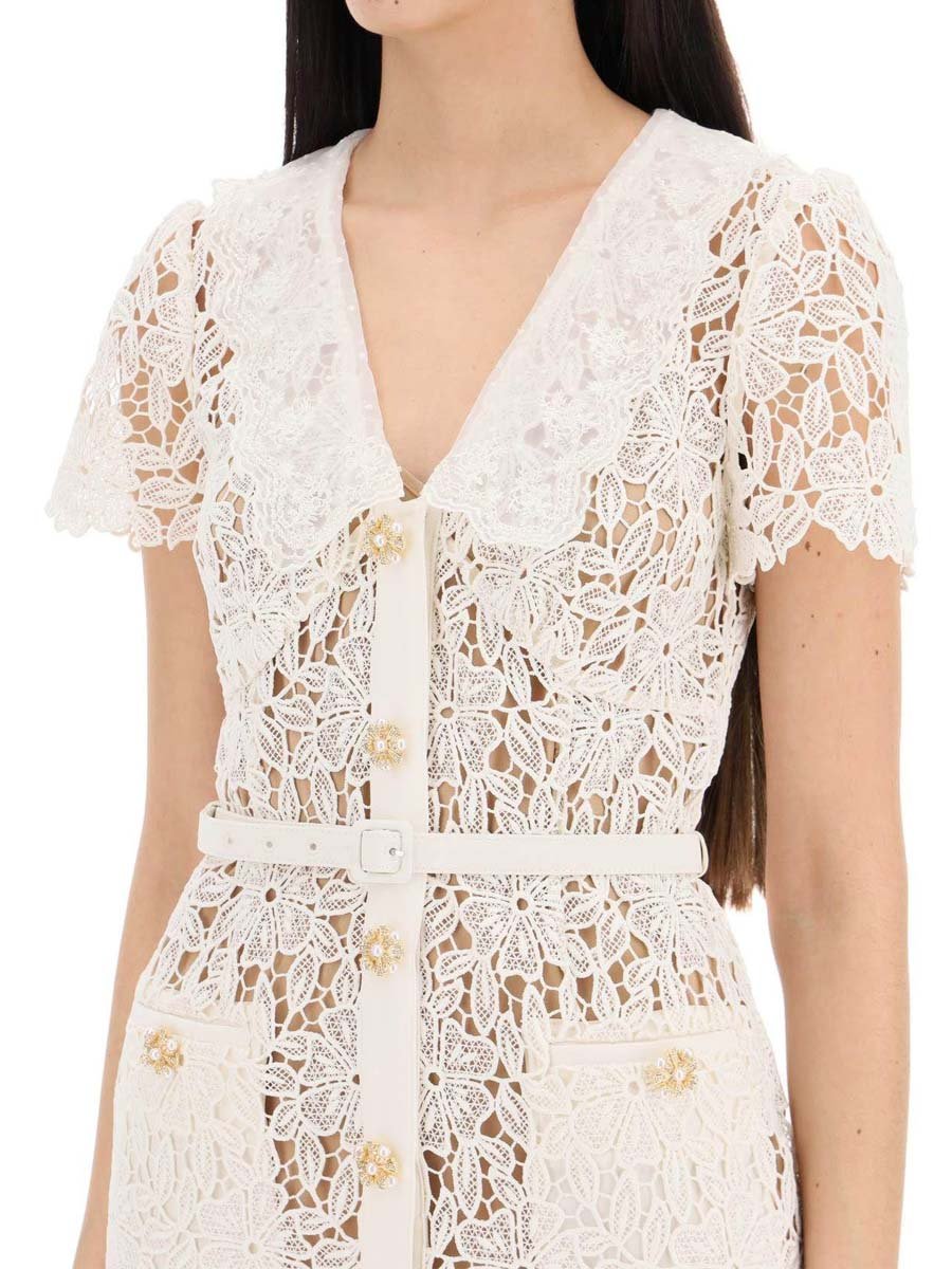 Kataura - Kurzärmeliges Spitzenkleid mit V-Ausschnitt und Knopfleiste