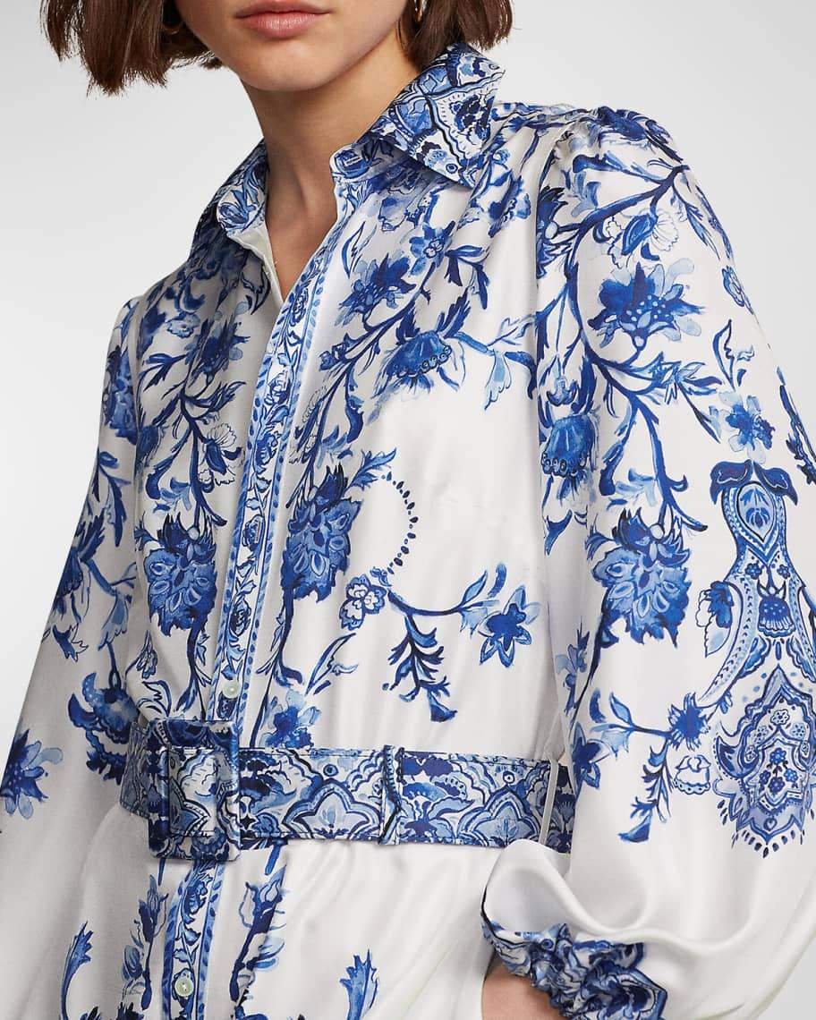 Lucy - Bedrucktes ausgestelltes Midi-Hemdkleid mit Gürtel