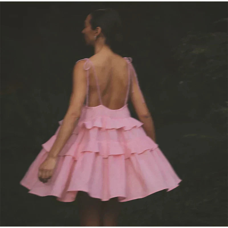 Dieses elegante Kleid mit vielen Volants vereint Leichtigkeit und Weiblichkeit für einen raffinierten Look. Die schmalen Träger verleihen ihm eine zarte Note, während der fließende Schnitt für einen anmutigen Fall sorgt. Perfekt für einen besonderen Anlass oder ein schickes Sommeroutfit, bietet es Komfort und Stil auf einfache Weise. Fügen Sie Ihrer Garderobe dieses luftige Stück hinzu!