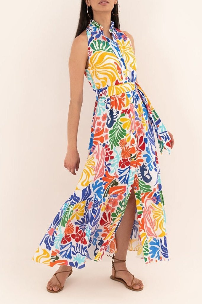 Wiebke - bedrucktes Midikleid mit Knöpfen und Gürtel