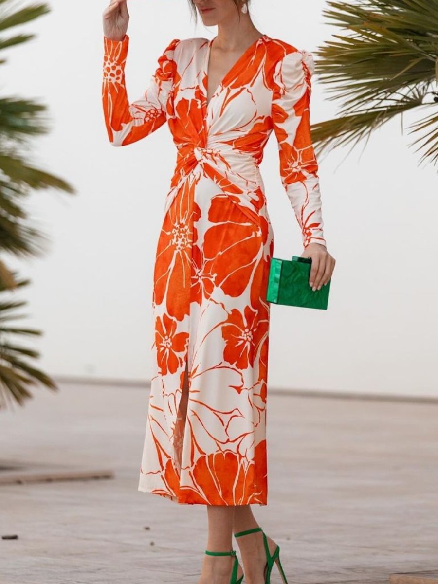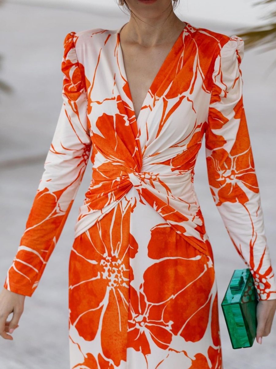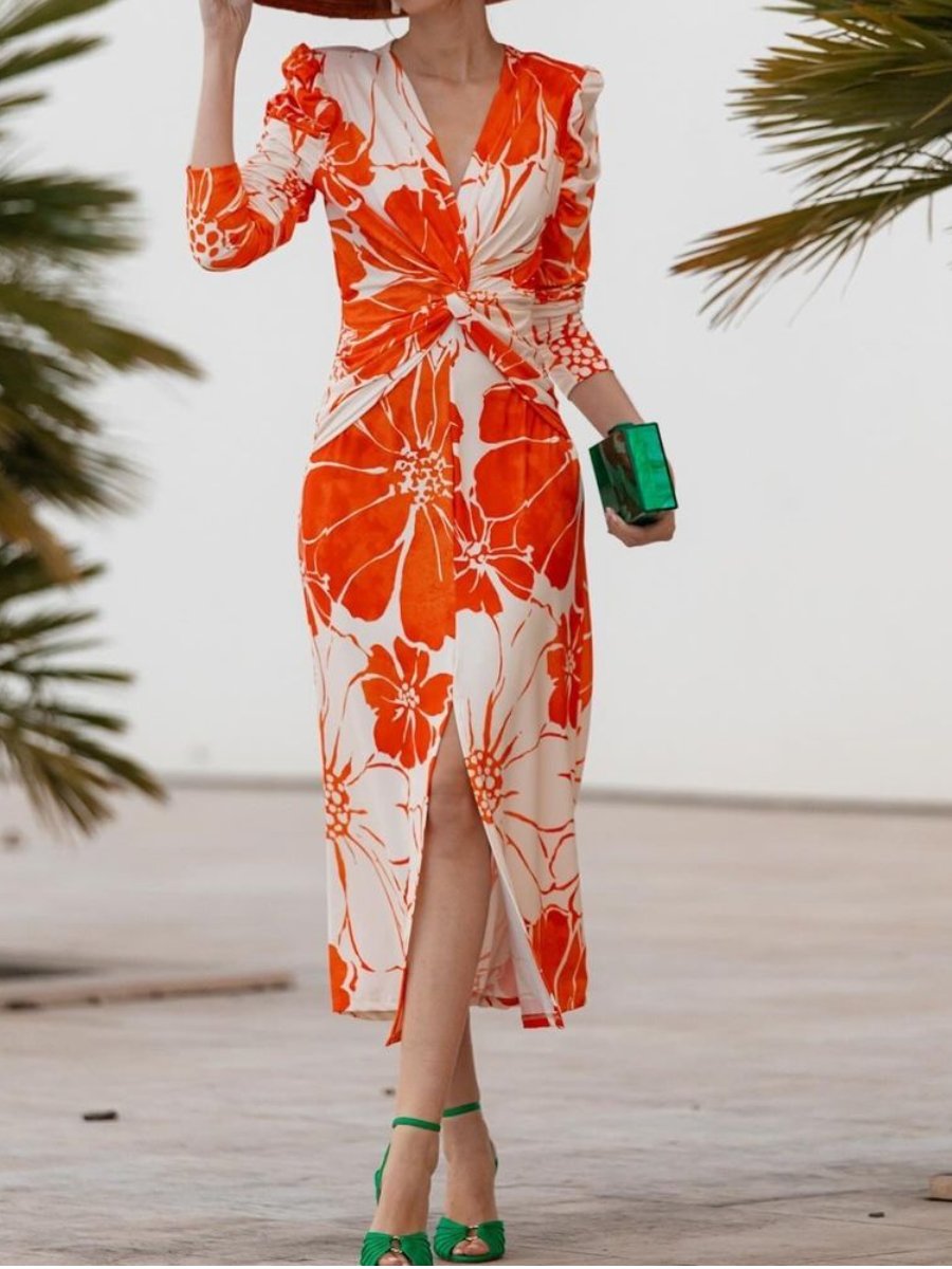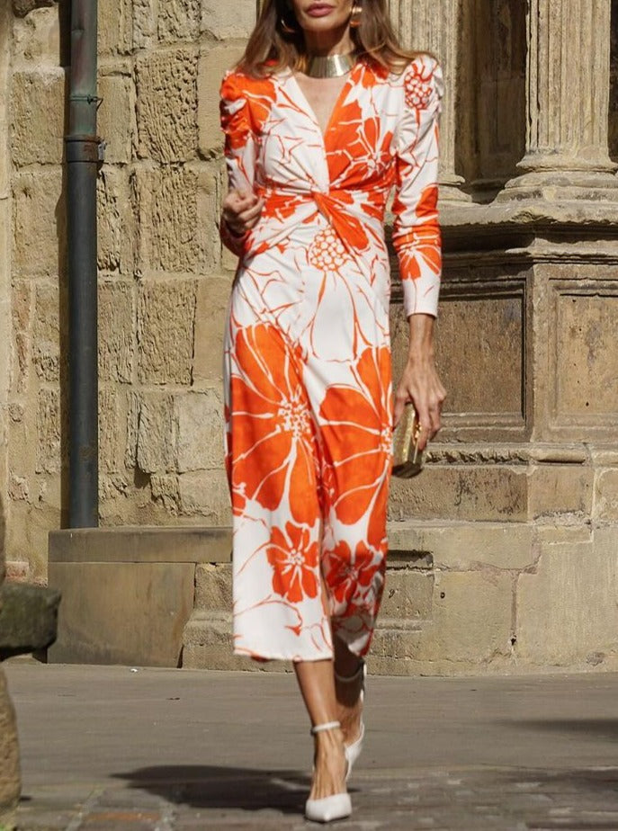 Aurora - Orangefarbenes Kleid mit V-Ausschnitt