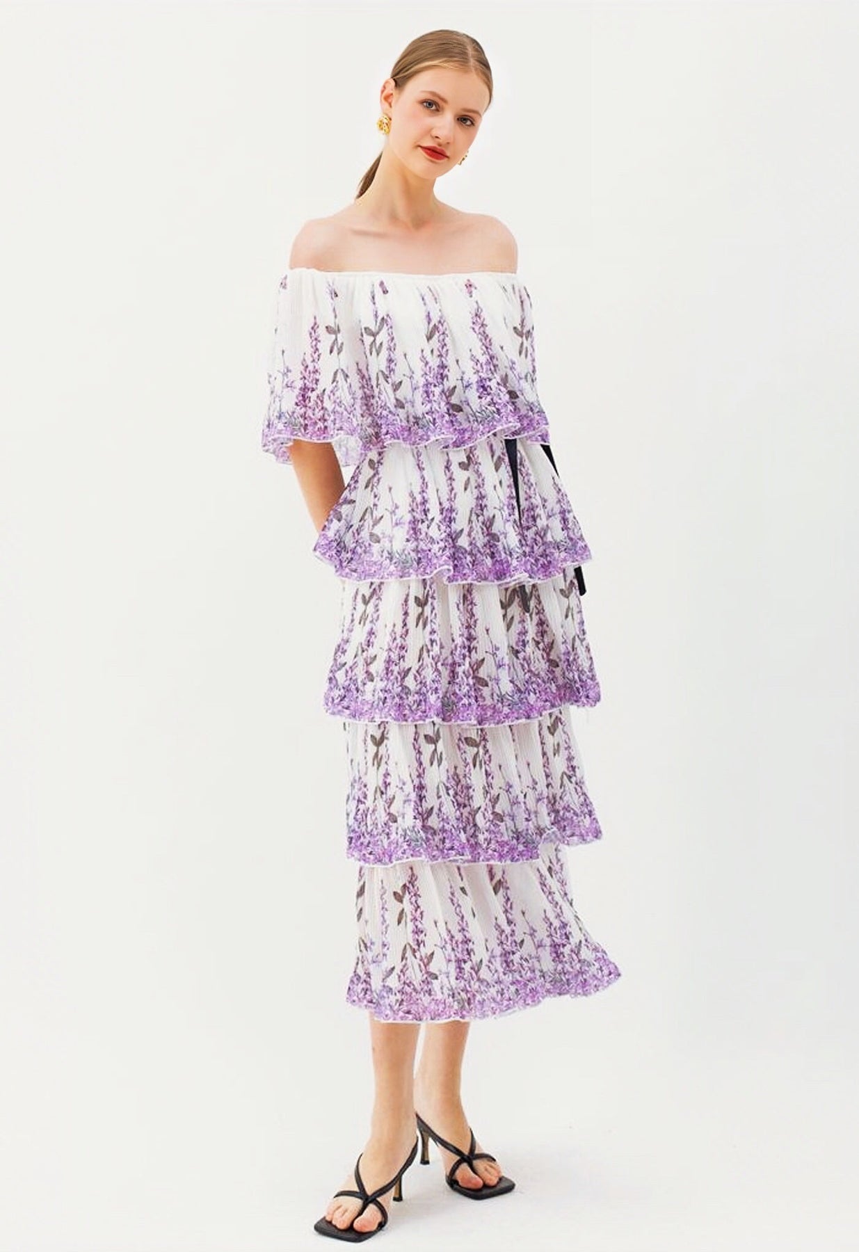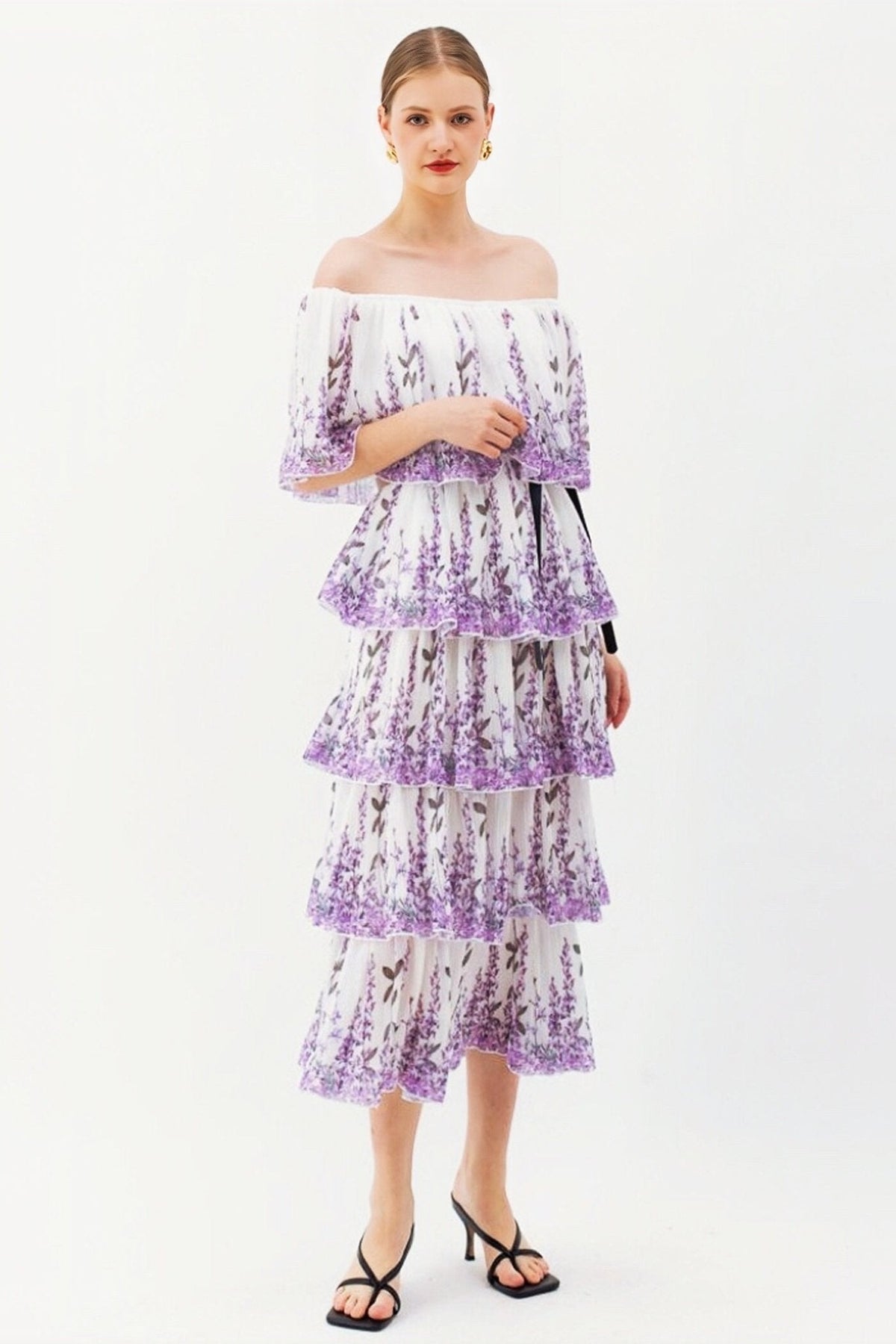 Axelle - Bedrucktes Plissee-Midikleid mit Stufen