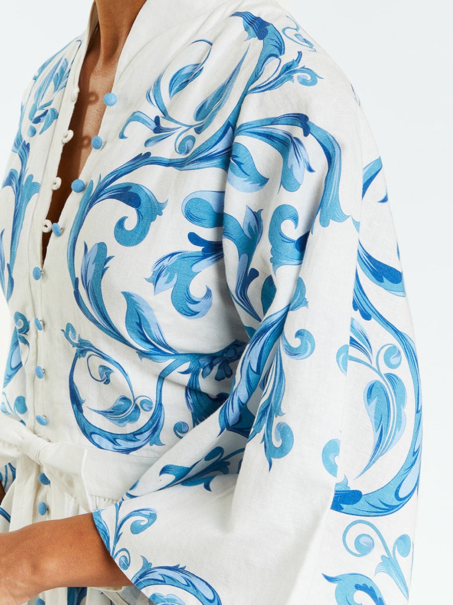 Bella - Bedrucktes Minikleid mit Knopfleiste und Spitze