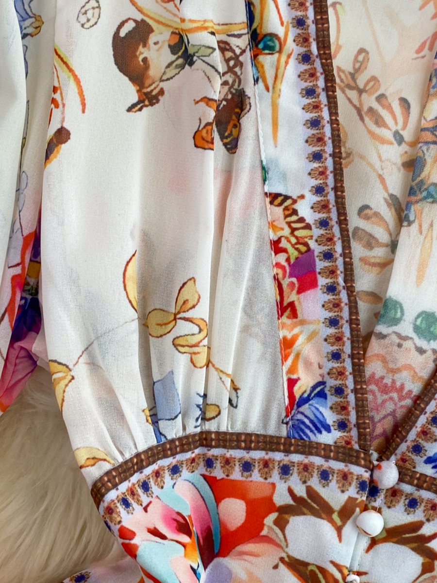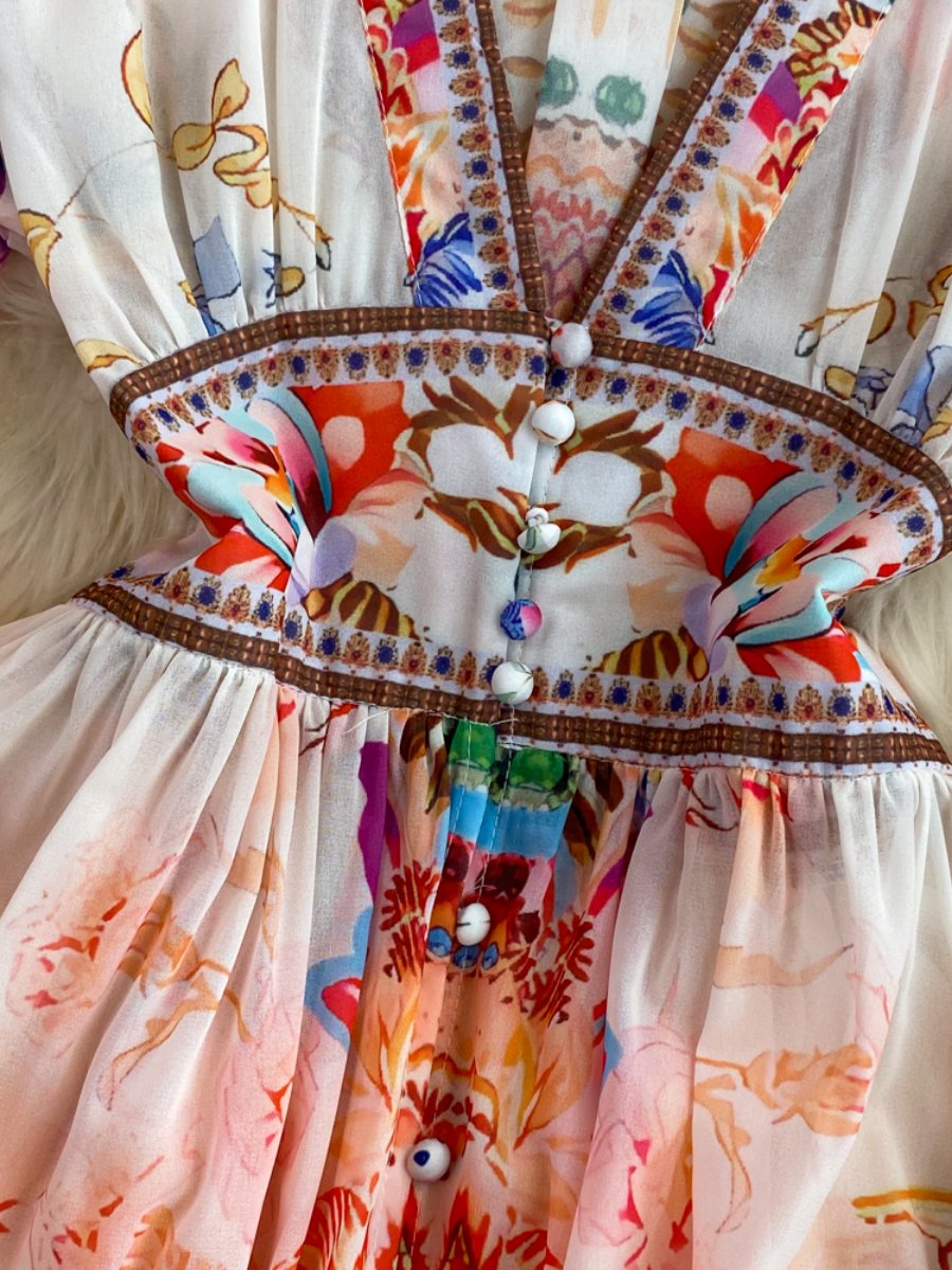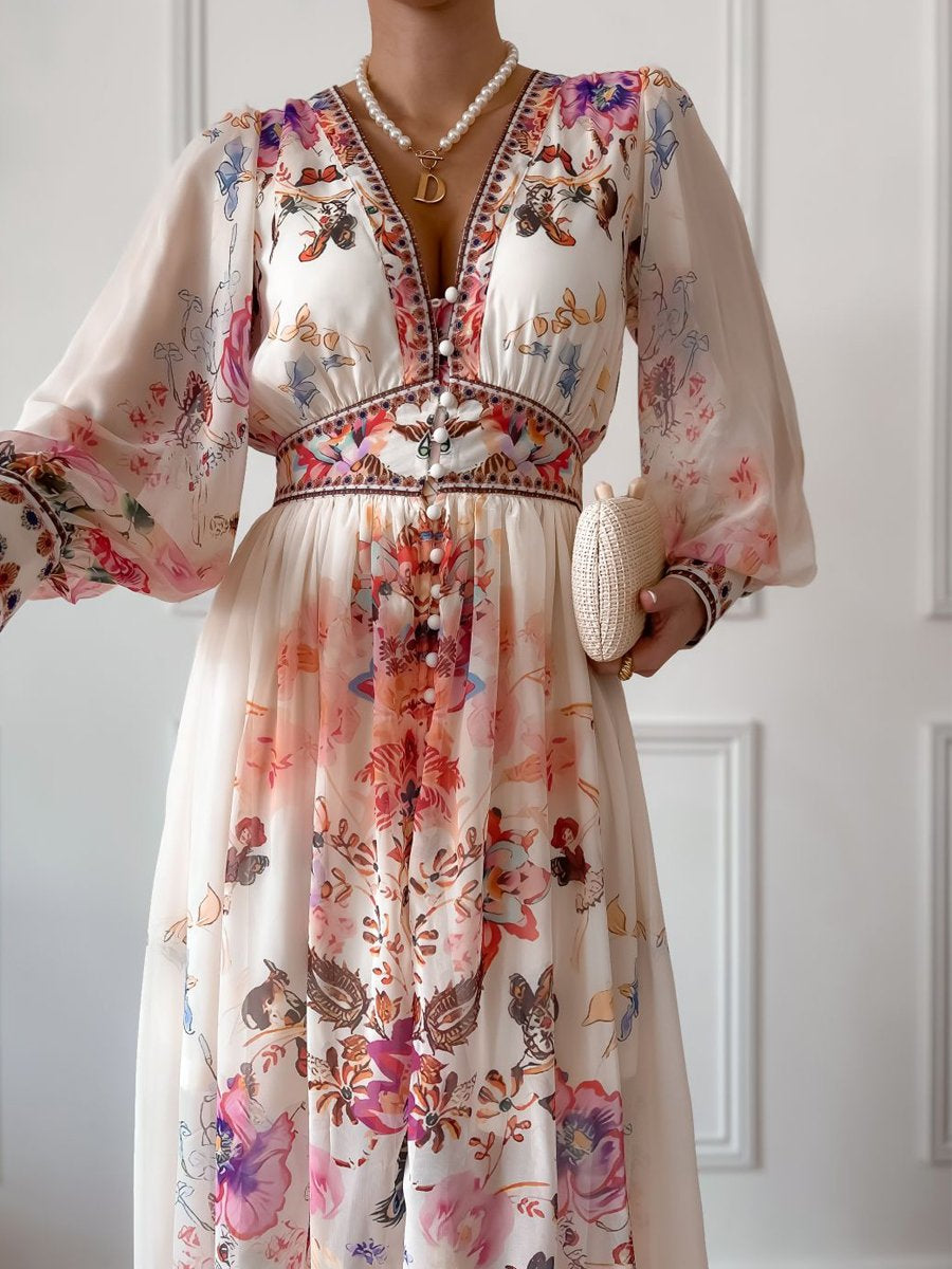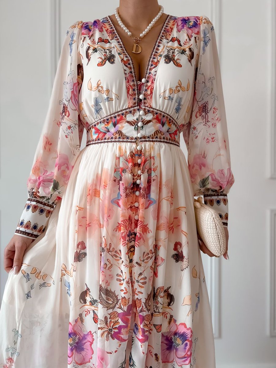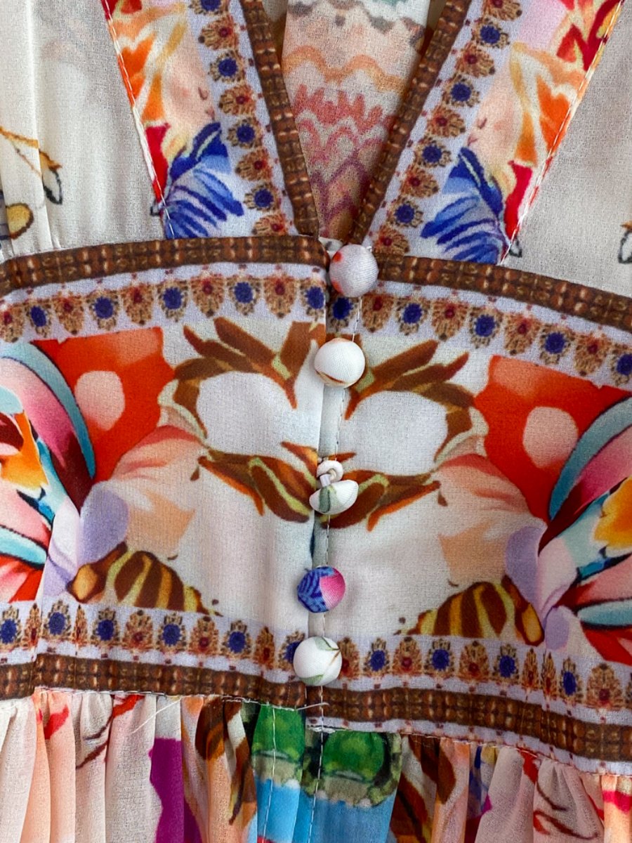 Verola - Einreihiges bedrucktes Kleid mit V-Ausschnitt