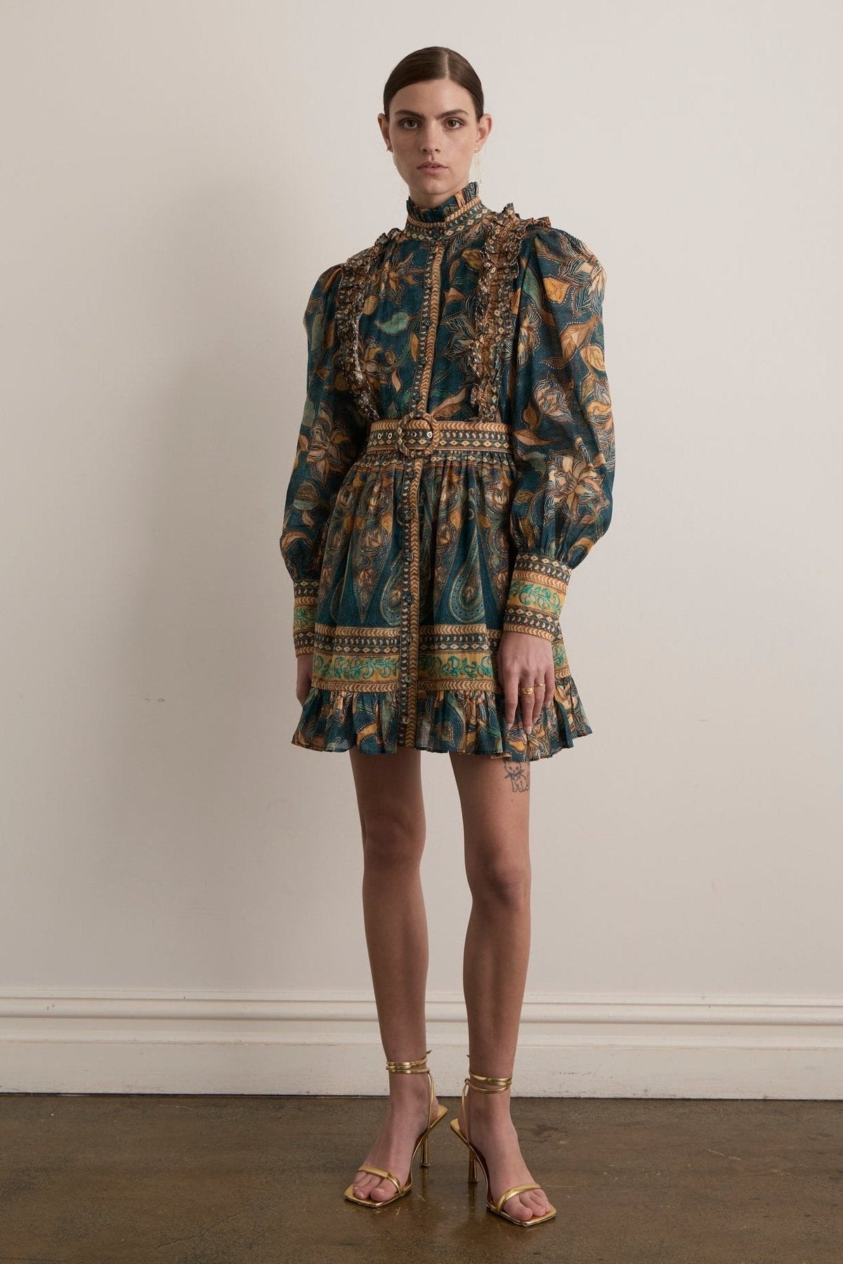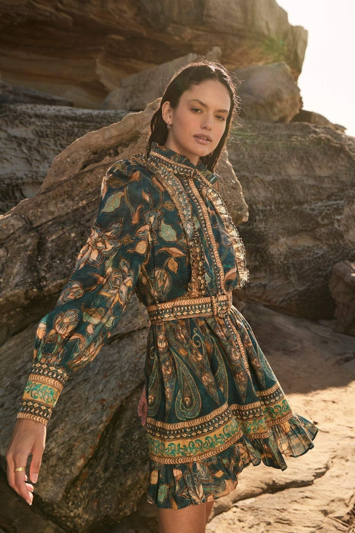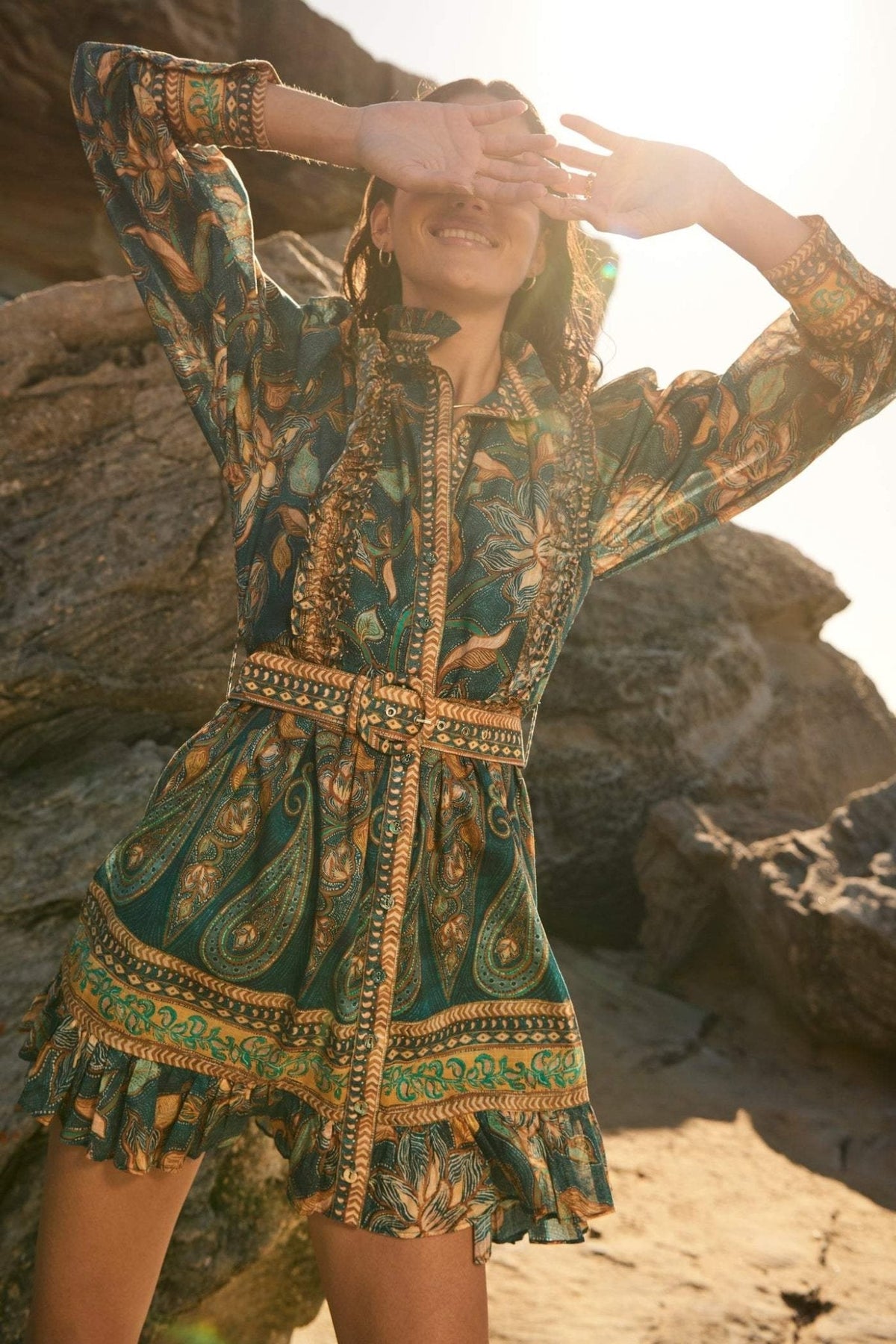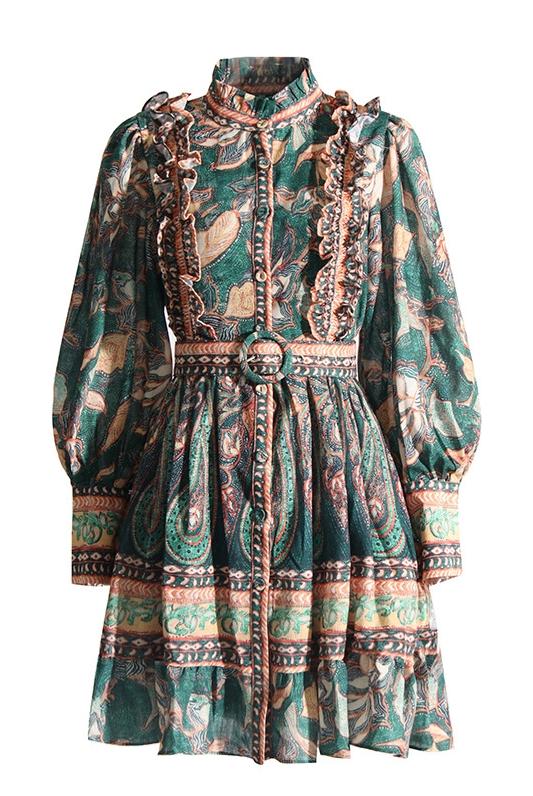 Viola - Bedrucktes Mini-Hemdkleid mit Rüschen und Gürtel